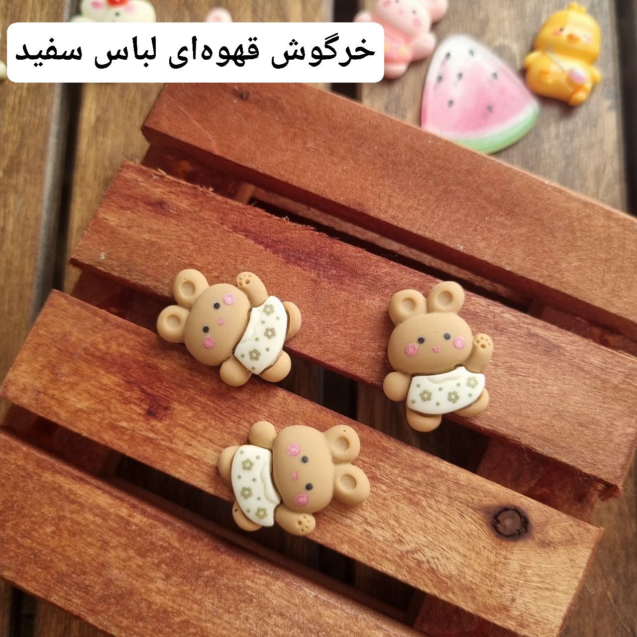 خرگوش سفید با لباس توت فرنگی ,خرس تپل سفید ,خرس تپل صورتی ,خرس تپل قهوه ای ,خرگوش قهوه ای با لباس سفید ,خرگوش صورتی با لباس صورتی ,خرگوش سفید با لباس قهوه ای ,هندوانه صورتی ,بستنی هندوانه ,خرگوش کیوت نسکافه ای ,خرگوش کیوت صورتی ,جوجه کوچولو ,کلّه خرگوش سفید ,کلّه خرگوش قهوه ای ,خرس سفید پاپیونی ,خرس قهوه ای با توت فرنگی ,ده عدد صابون رندوم ,سنجاق پیکسل یک و نیم سانتی |