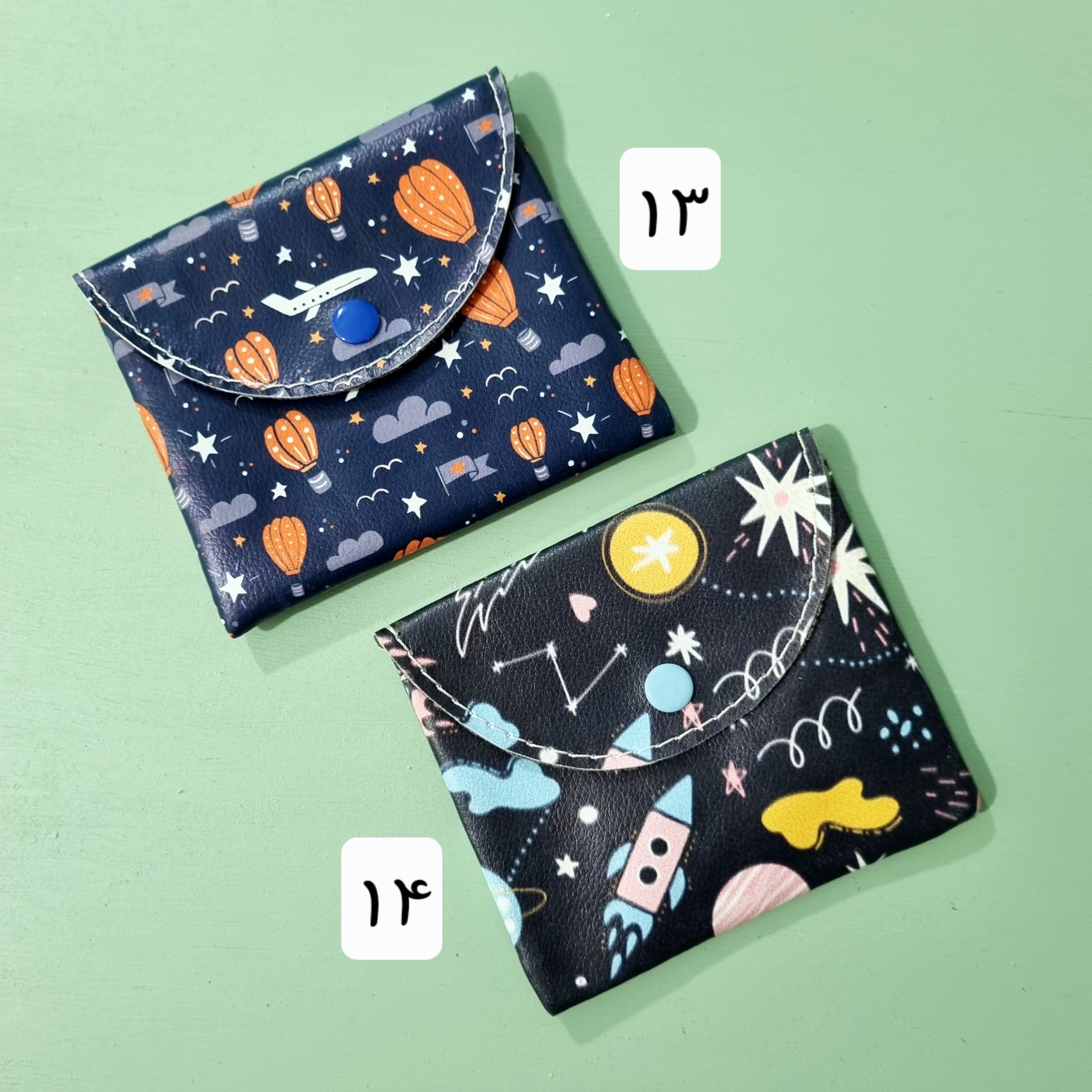 1-گل درشت آبرنگی ,2-پروانه ,3-بابونه ,4-آلبالو ,5-ریزه میزه های صورتی ,6-توت فرنگی ,7-گربه ها ,8-ماشینها ,9-گلدار زمینه فیروزه ای ,10-گل رز شلوغ زمینه خالدار ,11-موشک سبز ,12-کاکتوس ,13-بالن و هواپیما ,14-موشک و فضا |